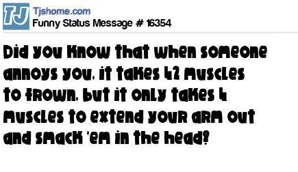 - # 21520 Remember when someone is annoying it takes 42 muscles in your face to frown but it only takes 4 muscles to extend your arm and slap the idiot!!
