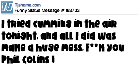 X says I tried cumming in the air tonight, and all I did was make a huge mess, F**k you Phil Colins !