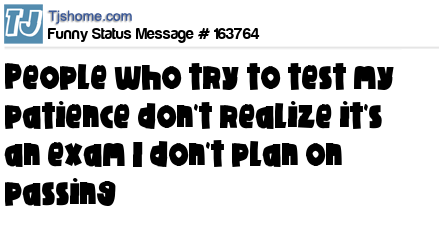X says People who try to test my patience don't realize it's an exam I don't plan on passing