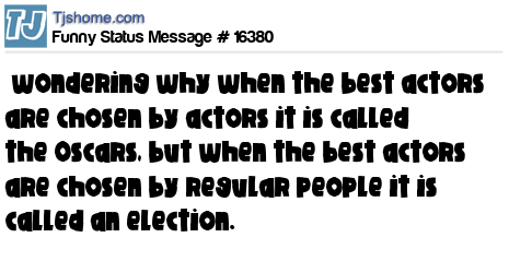 X wondering why when the best actors are chosen by actors it is called the Oscars, but when the best actors are chosen by regular people it is called an election.