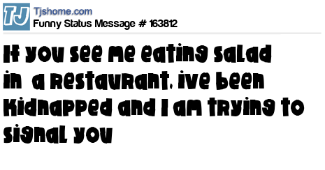 X says if you see me eating salad in a restaurant, ive been kidnapped and I am trying to signal you
