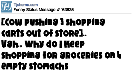 X says [Cow pushing 3 shopping carts out of store].. Ugh,,, Why do I keep shopping for groceries on 4 empty stomachs
