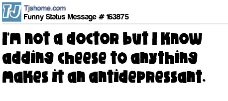 X says I'm not a doctor but I know adding cheese to anything makes it an antidepressant.