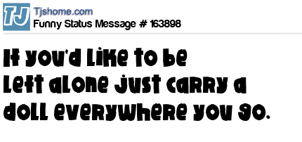 X says If you'd like to be left alone just carry a doll everywhere you go.