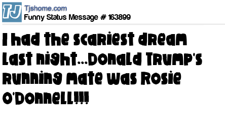 X says I had the scariest dream last night...Donald Trump's running mate was Rosie O'Donnell!!!