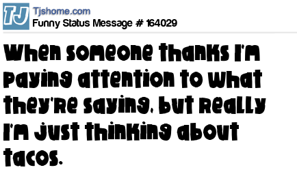 - # 164044 When someone thinks I'm paying attention to what they're saying, but really I'm just thinking about tacos.