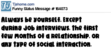 X says Always be yourself. Except during job interviews, the first few months of a relationship, or any type of social interaction.