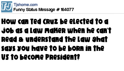 X says how can Ted Cruz be elected to a job as a law maker when he can't read & understand the law ghat says you have to be born in the US to become President?