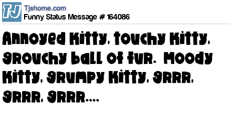 X says Annoyed kitty, touchy kitty, grouchy ball of fur. Moody kitty, grumpy kitty, grrr, grrr, grrr....