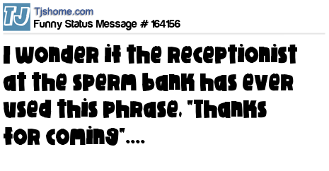 X says I wonder if the receptionist at the sperm bank has ever used this phrase, "Thanks for coming"....
