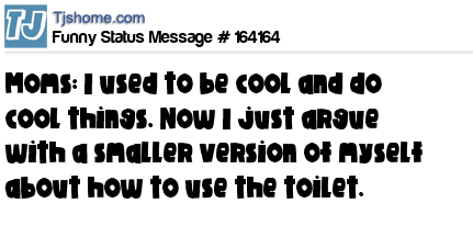 X says Moms: I used to be cool and do cool things. Now I just argue with a smaller version of myself about how to use the toilet.