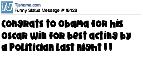 X says Congrats to Obama for his Oscar win for best acting by a Politician last night ! !