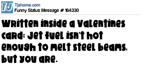 X says Written inside a Valentines card: Jet fuel isn't hot enough to melt steel beams, but you are.