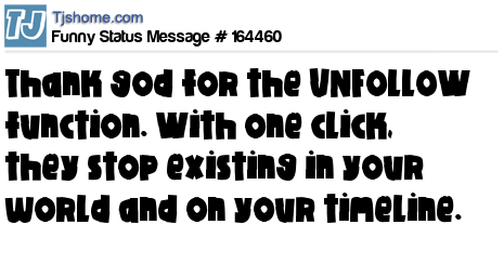 X says Thank god for the UNFOLLOW function. With one click, they stop existing in your world and on your timeline.