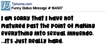 X says I am sorry that I have not matured past the point of making everything into sexual innuendo. ...It's just really hard.