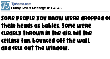 - # 119039 Some people you know were dropped on their heads as babies. Some were clearly thrown in the air, hit the ceiling fan, bounced off the wall & fell out the window.