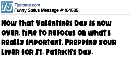 X says Now that Valentines Day is now over, time to refocus on what's really important. Prepping your liver for St. Patrick's Day.