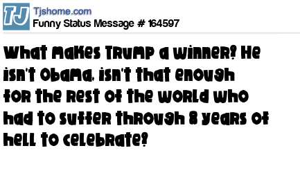 X says what makes Trump a winner? He isn't Obama, isn't that enough for the rest of the world who had to suffer through 8 years of hell to celebrate?