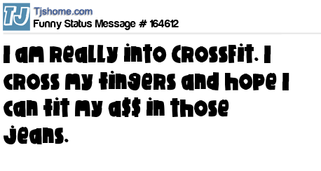 X says I am really into CrossFit. I cross my fingers and hope I can fit my a$$ in those jeans.