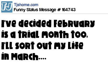 X says I've decided February is a trial month too, I'll sort out my life in March....