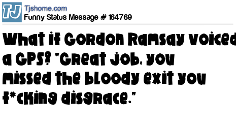 - # 159273 I think a Gordon Ramsey GPS would be great! "You missed the turn you stupid cow!"