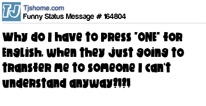 X says Why do I have to press "ONE" for English, when they just going to transfer me to someone I can't understand anyway?!?!