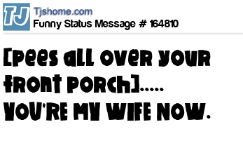 X says [pees all over your front porch]..... YOU'RE MY WIFE NOW.