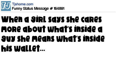 X When a girl says she cares more about what's inside a guy she means what's inside his wallet...