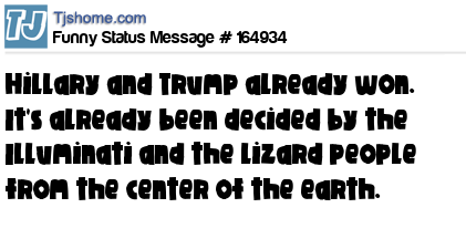 X says Hillary and Trump already won. It's already been decided by the Illuminati and the lizard people from the center of the earth.