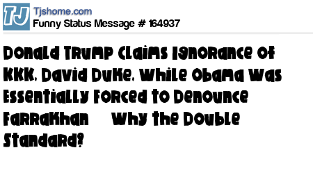 - # 164979 Donald Trump knows darn well who David Duke and the KKK are and he welcomes their endorsement. He just doesn't want to openly admit it.