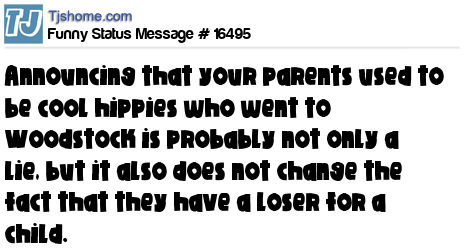 X Announcing that your parents used to be cool hippies who went to Woodstock is probably not only a lie, but it also does not change the fact that they have a loser for a child.