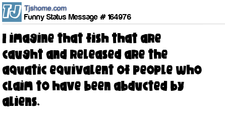X says I imagine that fish that are caught and released are the aquatic equivalent of people who claim to have been abducted by aliens.