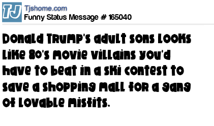 X says Donald Trump's adult sons looks like 80's movie villains you'd have to beat in a ski contest to save a shopping mall for a gang of lovable misfits.