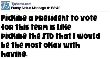 - # 164969 Picking a president to vote for this term is like picking the STD that I would be the most okay with having