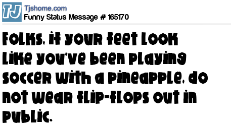X says Folks, if your feet look like you've been playing soccer with a pineapple, do not wear flip-flops out in public.