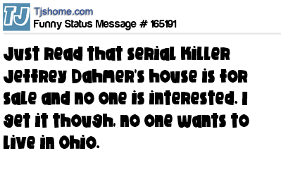 X says Just read that serial killer Jeffrey Dahmer's house is for sale and no one is interested. I get it though, no one wants to live in Ohio.