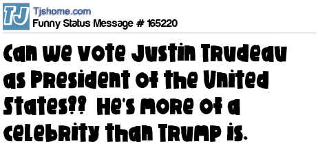 X says Can we vote Justin Trudeau as President of the United States??  He's more of a celebrity than Trump is.