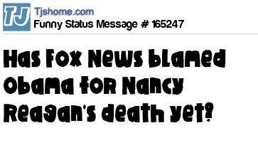 X says Has Fox News blamed Obama for Nancy Reagan's death yet?