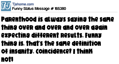 - # 152072 Doing the same thing over and over again and expecting different results isn't the definition of insanity,,, it's the definition of parenting.