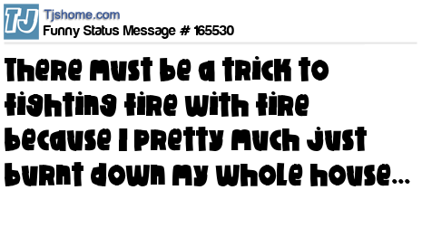X says There must be a trick to fighting fire with fire because I pretty much just burnt down my whole house...