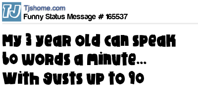 X says My 3 year old can speak 60 words a minute... With gusts up to 90