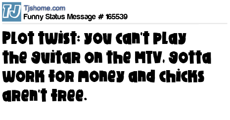 X says Plot twist: you can't play the guitar on the MTV, gotta work for money and chicks aren't free.