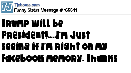 X Trump will be President!....I'm just seeing if I'm right on my Facebook memory. Thanks