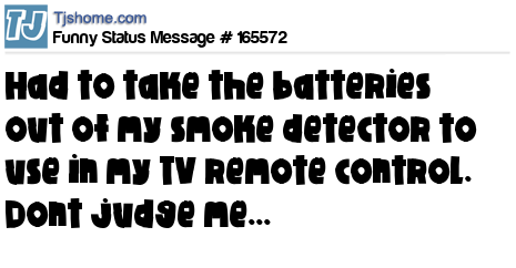 - # 105815 Just took the batteries out of my smoke detector to use in my TV remote control. Dont judge me.