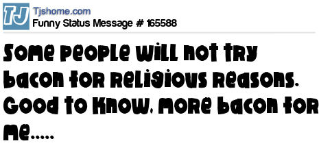 X says Some people will not try bacon for religious reasons. Good to know, more bacon for me.....