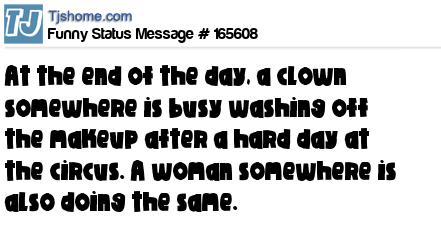 X says At the end of the day, a clown somewhere is busy washing off the makeup after a hard day at the circus. A woman somewhere is also doing the same.