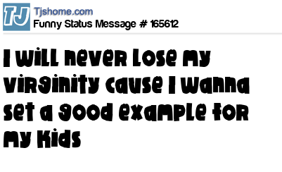 - # 165606 I haven't lost my virginity yet cause I never lose, I'm a winner I want to win.