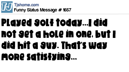 X played golf today...I did not get a hole in one, but I did hit a guy. That's way more satisfying...