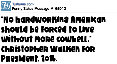 X says "No hardworking American should be forced to live without more cowbell." Christopher Walken for President, 2016.
