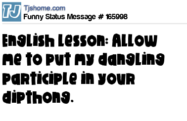 X  English Lesson: Allow me to put my dangling participle in your dipthong.